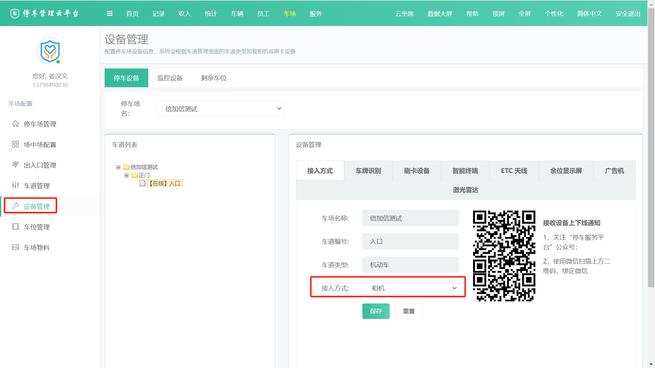 4、設備管理中相機接入方式選擇相機:。