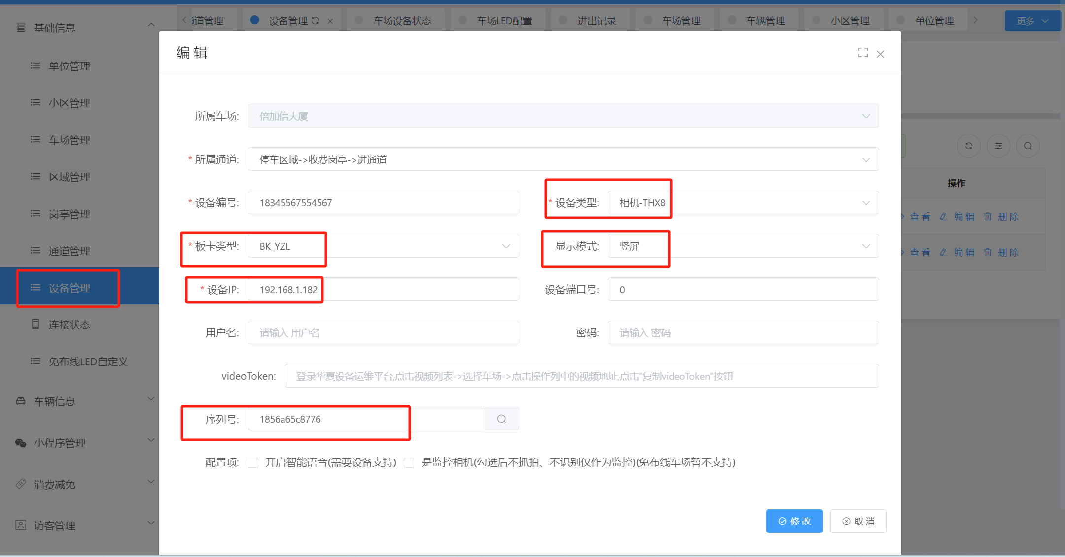 4、設備管理中添加設備,選擇華夏相機,相機ID在則通過第2步的一卡通調試工具讀取。